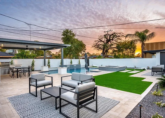 This property features an equipped kitchen including a fridge, oven, and a kitchenware for preparing meals. For meals, guests can head to ZuZu at Hotel Valley Ho, which is merely 12 minutes' walk away. Phoenix Sky Harbor International airport is situated 0.6 miles from the Scottsdale villa.
